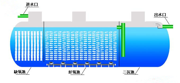 一體化污水處理設(shè)備是將一沉池、I、II級(jí)接觸氧化池、二沉池、污泥池集中一體的設(shè)備,并在I、II級(jí)接觸氧化池中進(jìn)行鼓風(fēng)曝氣,使接觸氧化法和活性污泥法有效的結(jié)合起來,節(jié)省了找人設(shè)計(jì)污水處理工藝和做基礎(chǔ)建設(shè)的繁瑣。